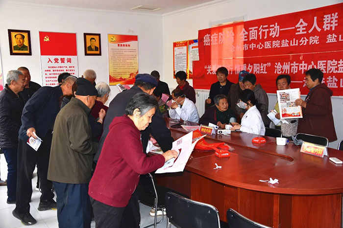 活動(dòng)組織初期經(jīng)過(guò)對(duì)滄州地區(qū)癌癥發(fā)病特點(diǎn)發(fā)現(xiàn)農(nóng)村地區(qū)惡性腫瘤年齡死亡情況低于城鄉(xiāng)水平。根據(jù)全國(guó)腫瘤防治宣傳周主題“癌癥防治 全面行動(dòng)——全人群 全周期 全社會(huì)”要求,鹽山分院把防癌多學(xué)科義診活動(dòng)選擇在農(nóng)村舉行。兜住兜牢底線,全面提升農(nóng)村人口的早癌篩查力度和防癌意識(shí)水平。