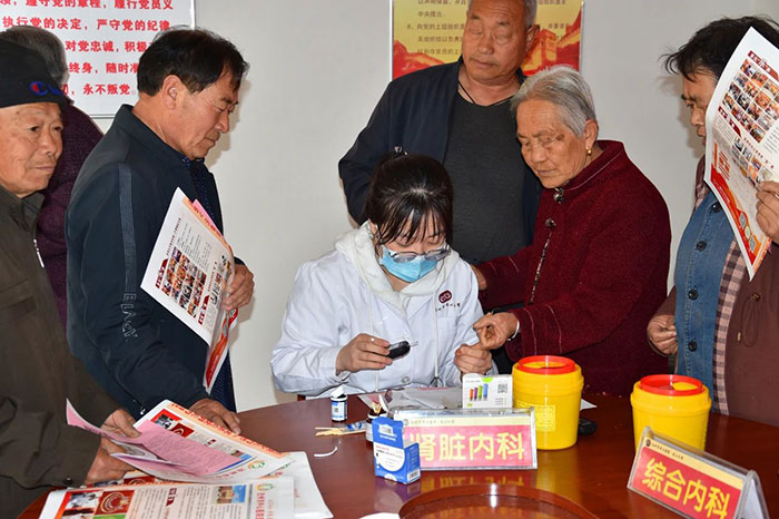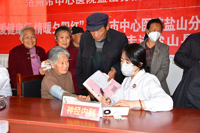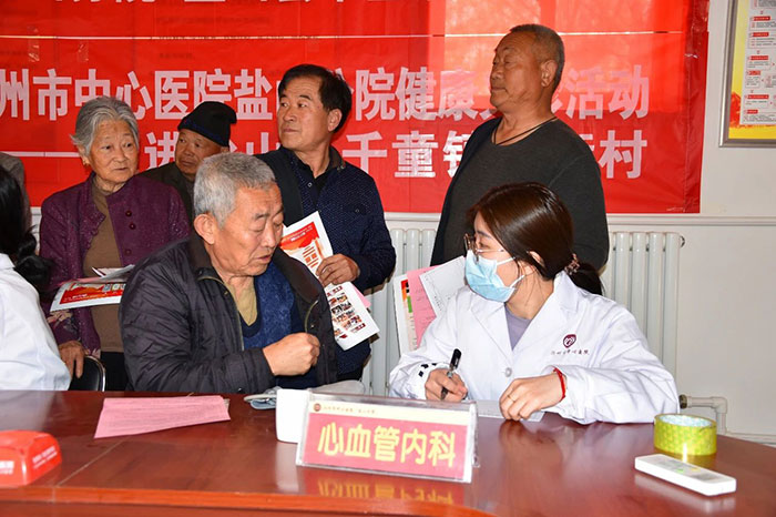 4月14日上午8點(diǎn),鹽山分院聯(lián)合千童鎮(zhèn)衛(wèi)生院和鄉(xiāng)村醫(yī)生在西街村開(kāi)展抗癌多學(xué)科義診活動(dòng)。來(lái)自滄州市中心醫(yī)院鹽山分院綜合內(nèi)科、心血管內(nèi)科、神經(jīng)內(nèi)科、中醫(yī)康復(fù)理療科、腎臟內(nèi)科等科室醫(yī)護(hù)人員在村委會(huì)為近百名老年人進(jìn)行了細(xì)致的健康診療,為村民測(cè)量血壓、血糖、心電圖和中醫(yī)號(hào)脈診療服務(wù),發(fā)放抗癌宣傳手冊(cè)300余冊(cè),受到了西街村村委會(huì)和村民一致好評(píng)。