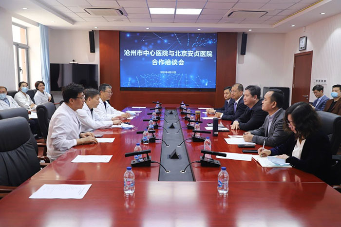 繼3月25日滄州市中心醫(yī)院成為全國第4家國家心血管疾病臨床醫(yī)學研究中心省級分中心建設單位后,4月19日,滄州市中心醫(yī)院黨委書記高廣明,黨委副書記、院長李勇,副院長、心血管內科學科帶頭人徐澤升,黨委委員、副院長、心血管內五科主任張軍,市中心醫(yī)院醫(yī)療集團副理事長龐麗敏帶領醫(yī)務部、科研處、院辦室、市疫病防控和公共衛(wèi)生臨床管理中心負責人赴首都醫(yī)科大學附屬北京安貞醫(yī)院合作洽談。