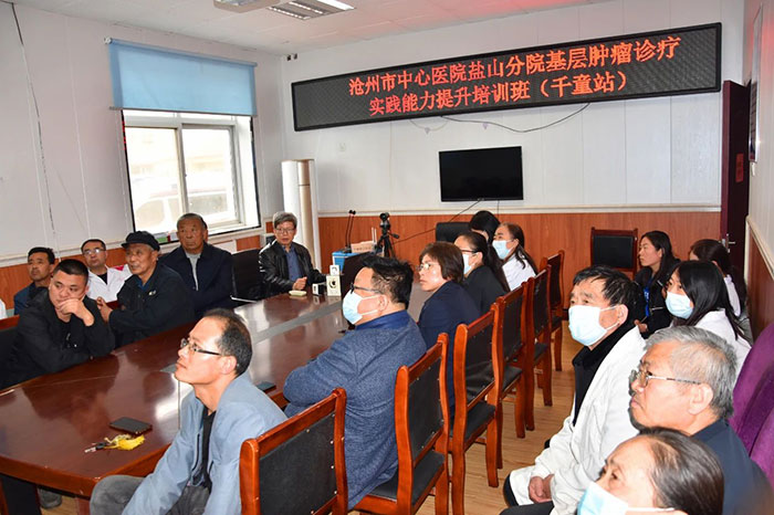 培訓班上,來自滄州市中心醫(yī)院甲狀腺乳腺外二科崔國忠主任醫(yī)師圍繞《甲狀腺腫瘤的篩查與診治》內(nèi)容為現(xiàn)場醫(yī)護人員作全面系統(tǒng)地講解輔導,幫助大家熟悉和掌握甲狀腺及乳腺惡性腫瘤防控重點環(huán)節(jié),為提升基層醫(yī)務人員癌癥防控能力打下堅實基礎(chǔ)。