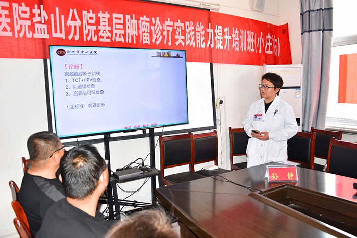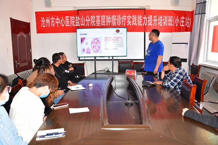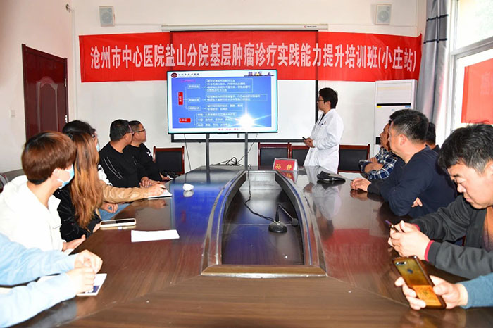 進一步提升基層醫(yī)務人員腫瘤規(guī)范化診療水平,給更多腫瘤患者帶來福音,4月19日下午,滄州市中心醫(yī)院鹽山分院深入鹽山縣小莊鎮(zhèn)衛(wèi)生院開展基層腫瘤診療實踐能力提升培訓班,邀請滄州市中心醫(yī)院專家授課。來自小莊鎮(zhèn)衛(wèi)生院的醫(yī)務人員及轄區(qū)內(nèi)鄉(xiāng)醫(yī)參加培訓。