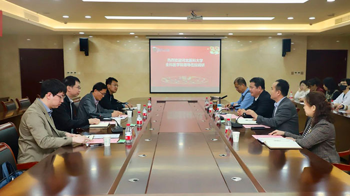 4月20日下午,河北醫(yī)科大學(xué)全科醫(yī)學(xué)院院長張洪福、副書記全江濤一行4人到滄州市中心醫(yī)院,就訂單定向醫(yī)學(xué)生培養(yǎng)工作開展調(diào)研座談。院黨委書記高廣明,黨委副書記、院長李勇,副院長徐澤升陪同調(diào)研。教學(xué)處主任彭志青、教學(xué)管理相關(guān)教師、教研室主任及學(xué)生代表參加了座談會。