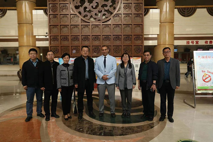 4月23日,滄州市中心醫(yī)院舉辦第一屆國際神經(jīng)介入遠(yuǎn)見者對話座談會,美國密蘇里州密蘇里大學(xué)安南(Adnan I.Qureshi)教授應(yīng)邀專程出席并講座。會上,醫(yī)院聘任安南教授擔(dān)任客座教授。會議結(jié)束后,安南教授在神經(jīng)血管介入科主任劉永昌等人的陪同下到滄州市中心醫(yī)院卒中中心實地參觀交流。