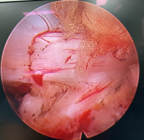 內(nèi)鏡下可以清晰顯露硬膜及神經(jīng)根