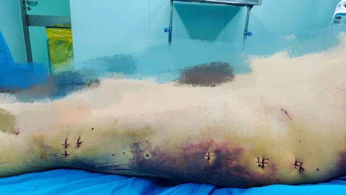 40多歲的王先生是一名大貨車司機,因為一次交通事故意外導致大腿骨折,被送到了出事地點附近的醫(yī)院,當?shù)蒯t(yī)生告知保守治療可能導致終生的殘疾,手術治療需要切開20-30cm的大口子還需要輸血,王先生由此對手術產(chǎn)生了非常大的恐懼感。在當?shù)蒯t(yī)院被疼痛和恐懼折磨了幾天以后,抱著試試看的態(tài)度,找到了滄州市中心醫(yī)院創(chuàng)傷骨三科(骨九科)宋昆主任。