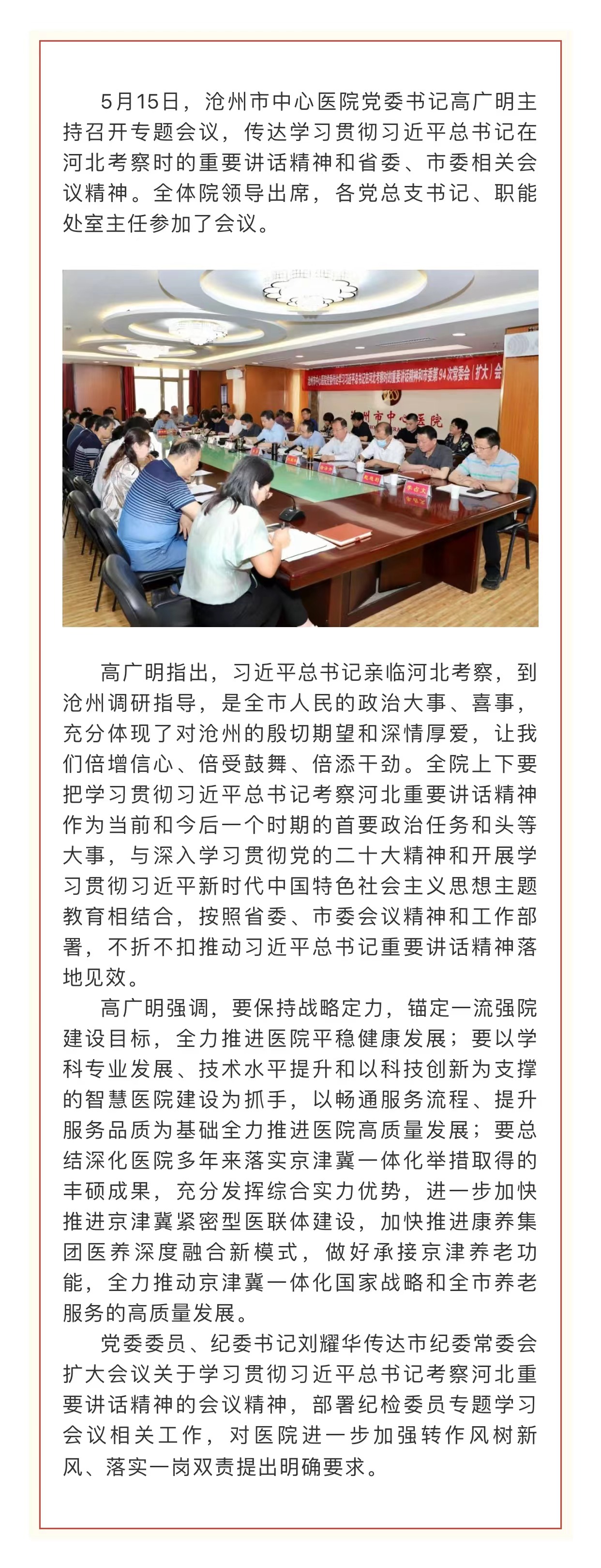 牢記囑托擔(dān)使命 感恩奮進譜新篇 | 滄州市中心醫(yī)院學(xué)習(xí)貫徹習(xí)近平總書記考察河北重要講話精神