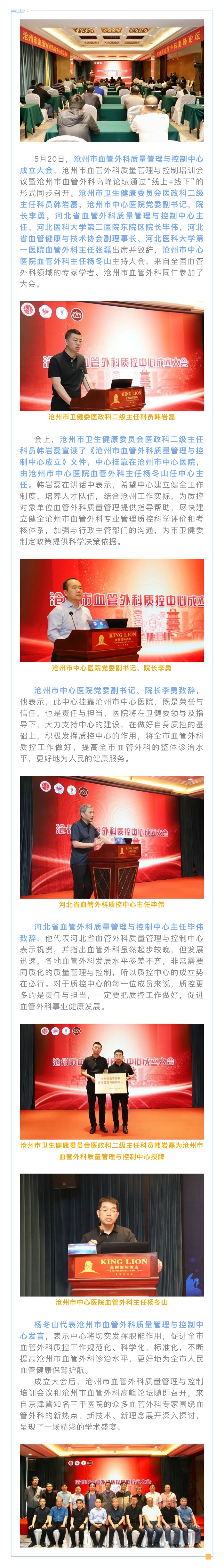 滄州市血管外科質(zhì)量管理與控制中心在滄州市中心醫(yī)院成立