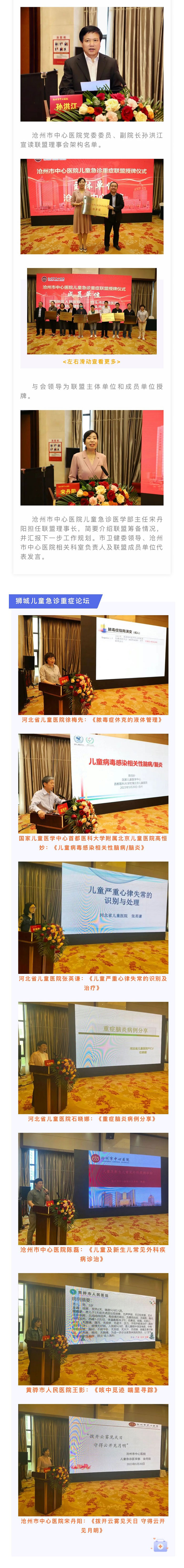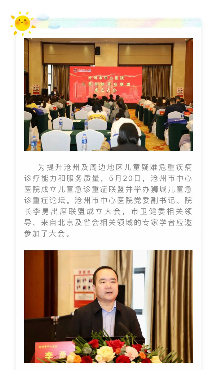 滄州市中心醫(yī)院黨委副書記、院長李勇致辭,表示滄州市中心醫(yī)院作為省衛(wèi)健委批準的河北省區(qū)域性醫(yī)療中心,滄州及周邊地區(qū)歷史最長、規(guī)模最大:學科最齊全、綜合實力最強的三甲綜合醫(yī)院多年來認真貫徹落實京津冀協(xié)同發(fā)展的國家戰(zhàn)略,充分發(fā)揮學科技術優(yōu)勢,牽頭成立了20余個??坡?lián)盟,為促進全市優(yōu)質醫(yī)療資源均衡下沉,提升基層衛(wèi)生健康服務水平,讓百姓在家門口享受高水平醫(yī)療服務做出了重要貢獻。兒童重癥醫(yī)學作為一個年輕的學科,在兒科危重癥的搶救和治療過程中發(fā)揮著越來越重要的作用,滄州市中心醫(yī)院兒童急診醫(yī)學部依托醫(yī)院強大綜合實力,特別是急診醫(yī)學科作為“十四五”河北省醫(yī)學重點學科在急危重癥患者救治、急診轉運、MDT多學科聯(lián)合診療和體外生命支持系統(tǒng)(ECMO)等方面的技術和學術優(yōu)勢,與兒內(nèi)科(神經(jīng)、呼吸、血液、免疫性疾病等)、兒外科、小兒骨科,兒童康復科、兒童營養(yǎng)科等多學科形成合力,擔負著全市急危重癥患兒的救治重任。希望兒童急診重癥聯(lián)盟的成立,通過搭建專業(yè)化兒童急救及急危重癥救治平臺,推廣兒科急危重癥救治的科學理念,通過優(yōu)化衛(wèi)生資源配置,實現(xiàn)成員單位在學科建設、技術發(fā)展、科研教學、人才培養(yǎng)等方面的資源共享、優(yōu)勢互補,積極促進全市乃至周邊地區(qū)兒童重癥醫(yī)學事業(yè)的發(fā)展,提高區(qū)域兒科急危重癥患者的救治成功率,為守護兒童生命健康做出重要貢獻。 |