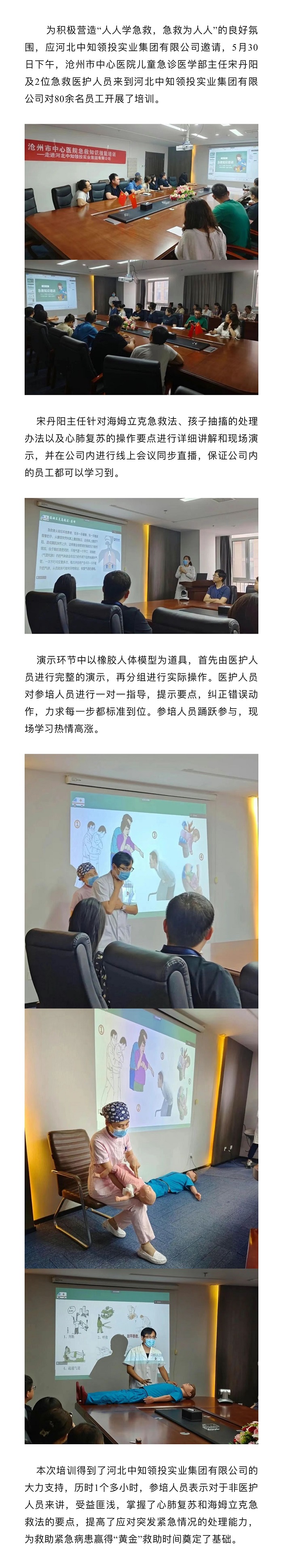 滄州市中心醫(yī)院急救知識(shí)技能培訓(xùn)——走進(jìn)河北中知領(lǐng)投實(shí)業(yè)集團(tuán)有限公司