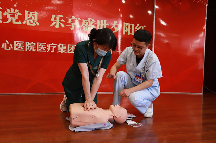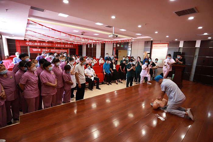 2023年6月1日—7日是第五個中國心肺復蘇周,今年的主題為“關愛生命,救在身邊”。為提高公眾對心肺復蘇知識的知曉率,鼓勵更多人參與學習、掌握心肺復蘇這項必備的技能,滄州市中心醫(yī)院積極響應胸痛中心總部倡議,舉辦心肺復蘇周主題活動,為挽救更多生命貢獻自己的力量。