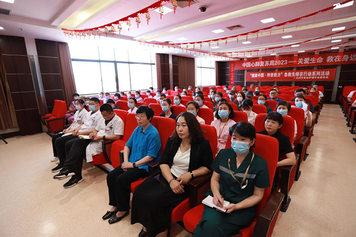 6月6日,滄州市中心醫(yī)院胸痛中心在康養(yǎng)集團組織開展了“中國心肺復蘇周2023——關愛生命 救在身邊”科普講座及培訓活動,共計100余名醫(yī)護人員、陪護人員、保潔人員參加了此次培訓活動。