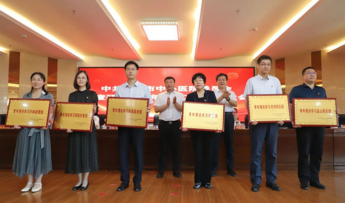滄州市委市直機關工委書記張一新、滄州市中心醫(yī)院黨委書記高廣明為青年學習工程職能科室組、行政助理組、臨床醫(yī)技組、護理組、河間分院組、鹽山分院組授牌