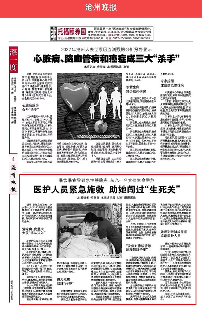 近日,家住東光縣的11歲女孩小文(化名)突發(fā)急性重癥胰腺炎,多個臟器受損,意識喪失,命懸一線。市中心醫(yī)院兒科產(chǎn)科院區(qū)醫(yī)護人員展開生死營救,最終從“死神”手里奪回了她的生命。
