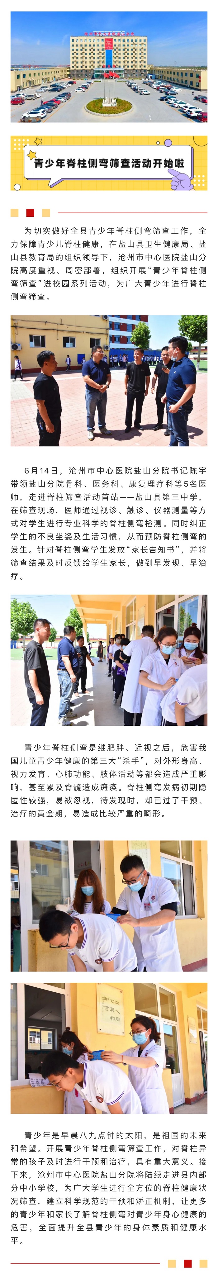 【挺起脊梁 助力成長】滄州市中心醫(yī)院鹽山分院深入校園開展青少年脊柱側彎篩查活動
