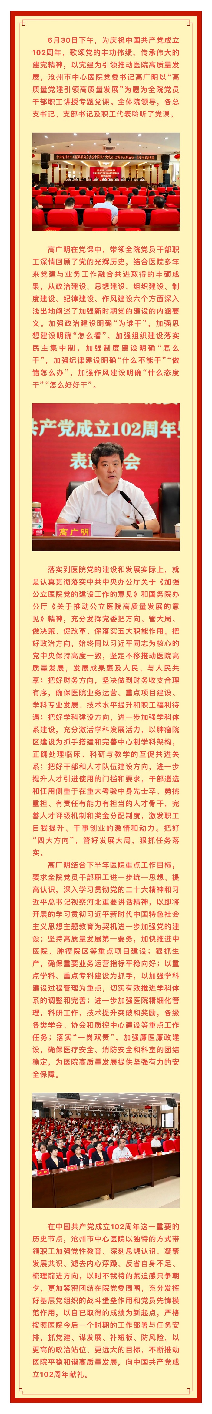 表彰先進(jìn)典型 凝聚奮進(jìn)力量|滄州市中心醫(yī)院召開(kāi)慶祝中國(guó)共產(chǎn)黨成立102周年暨“七一”表彰大會(huì)
