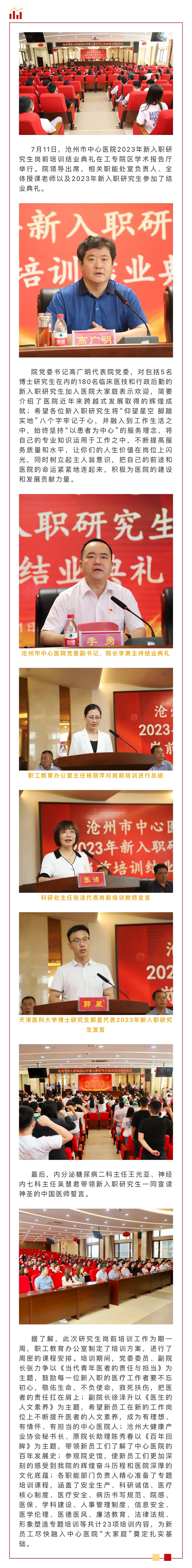 滄州市中心醫(yī)院舉行2023年新入職研究生崗前培訓結業(yè)典禮