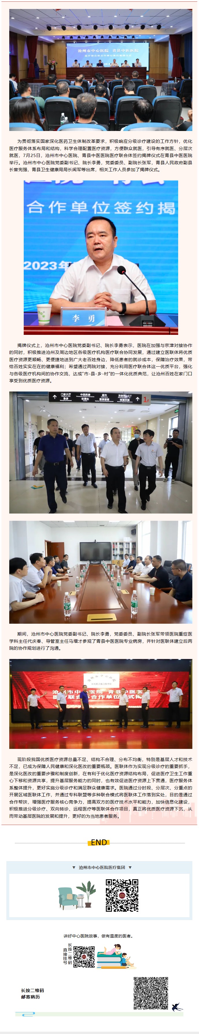 滄州市中心醫(yī)院與青縣中醫(yī)醫(yī)院舉行醫(yī)聯(lián)體簽約揭牌儀式