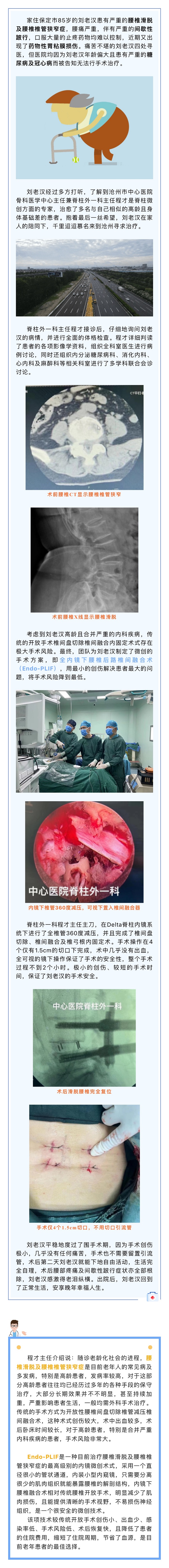 【大骨科/新作為 中心醫(yī)院骨科技術(shù)巡禮】脊柱外一科(骨一科):Endo-PLIF技術(shù)為高齡腰椎滑脫伴腰椎椎管狹窄患者解除痛苦