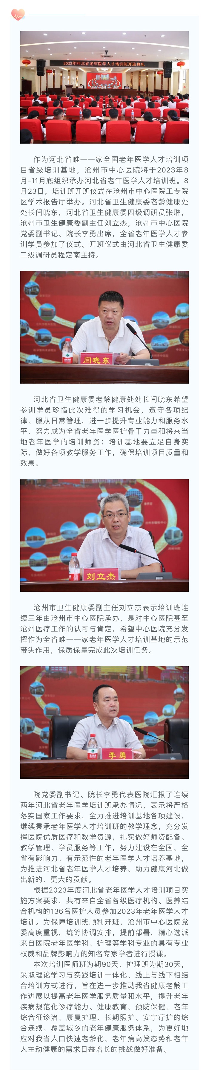 滄州市中心醫(yī)院承辦全國老年醫(yī)學(xué)人才培訓(xùn)項目2023年河北省老年醫(yī)學(xué)人才培訓(xùn)班
