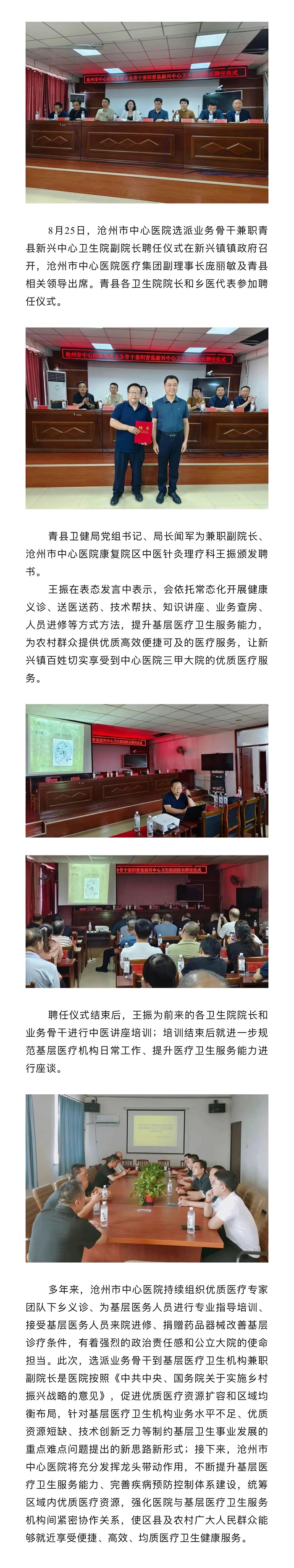 滄州市中心醫(yī)院兼職衛(wèi)生院副院長工程 | 康復院區(qū)中醫(yī)針灸理療科王振到青縣新興中心衛(wèi)生院任新職
