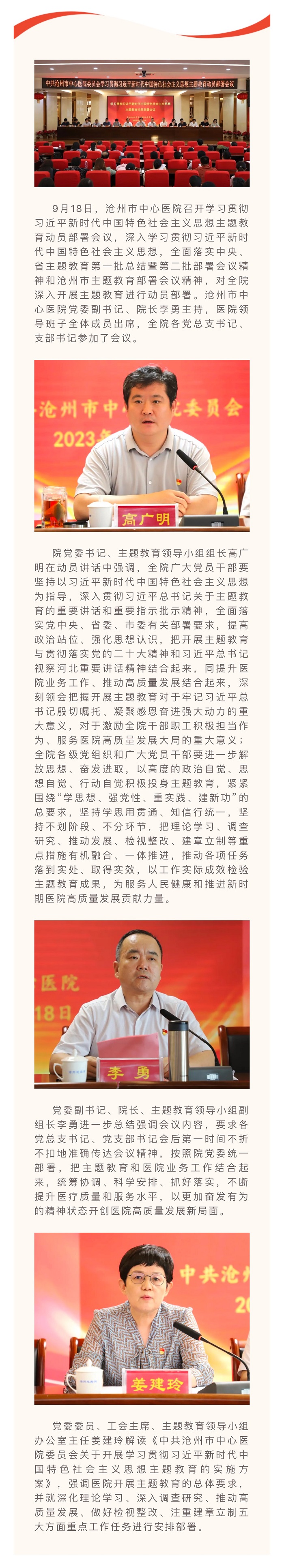 滄州市中心醫(yī)院召開學習貫徹習近平新時代中國特色社會主義思想主題教育動員部署會議