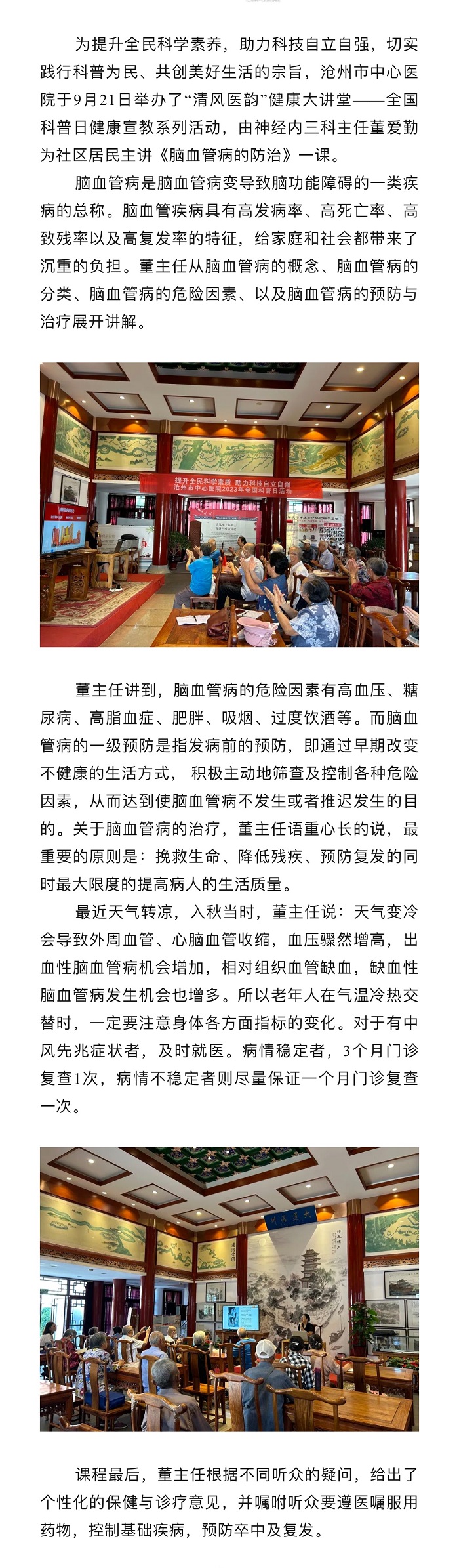 清風(fēng)醫(yī)韻健康大講堂 | 腦血管病的防治