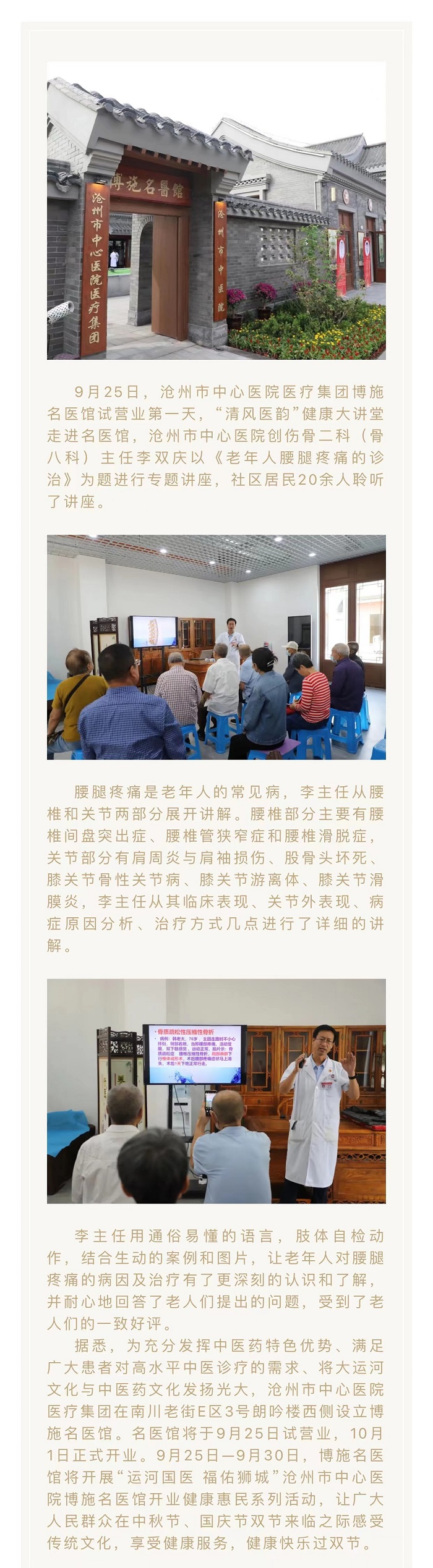 博施名醫(yī)館試營業(yè) 科普講座送健康 | 滄州市中心醫(yī)院“清風(fēng)醫(yī)韻健康大講堂”走進(jìn)博施名醫(yī)館