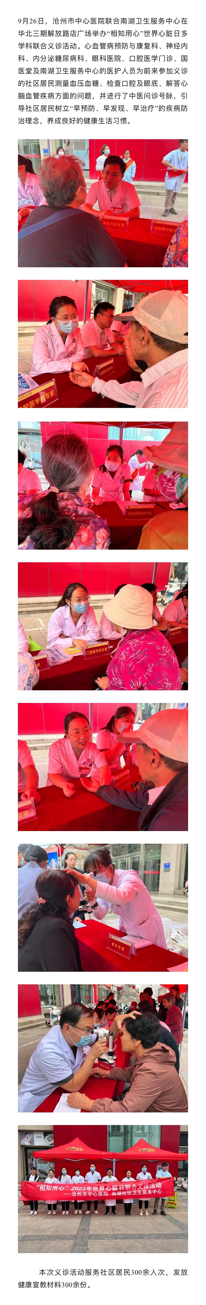 9.29世界心臟日 | 滄州市中心醫(yī)院舉辦“相知用心”世界心臟日聯(lián)合義診活動