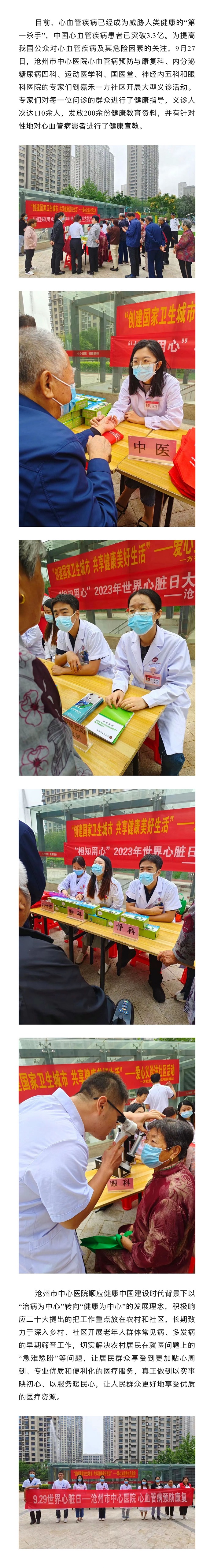 9.29世界心臟日 | 滄州市中心醫(yī)院開展“相知用心”2023年世界心臟日義診活動走進嘉禾一方社區(qū)