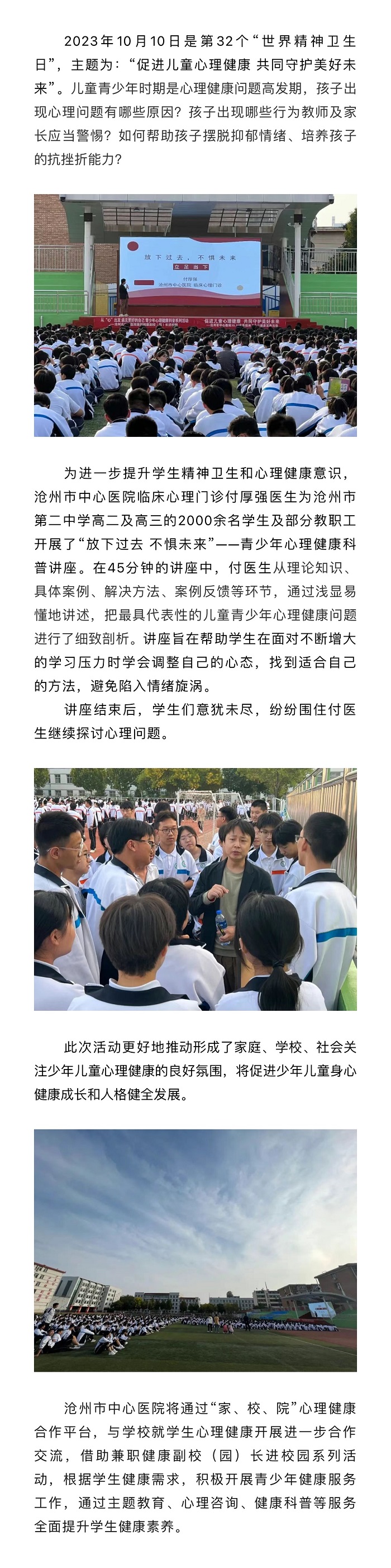 促進(jìn)兒童心理健康 共同守護(hù)美好未來 | 中心醫(yī)院世界精神衛(wèi)生日進(jìn)校園活動