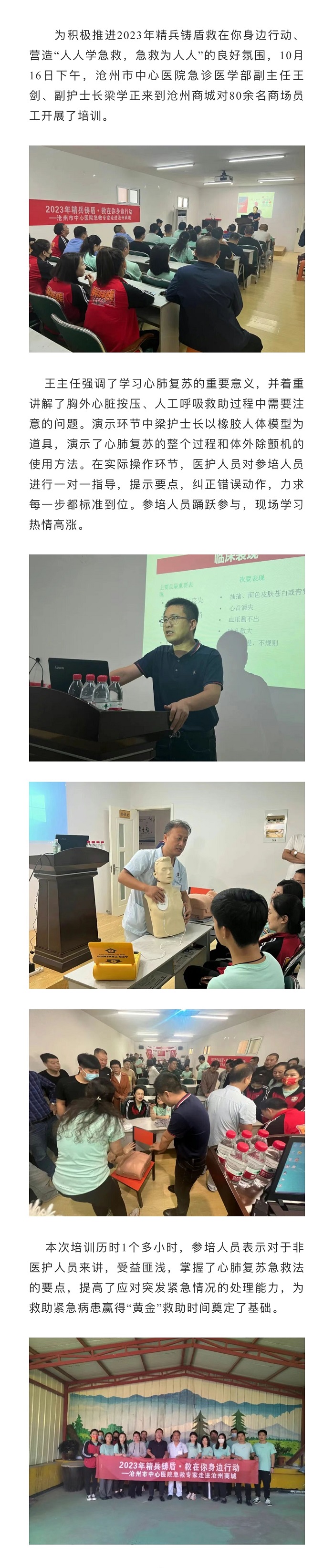 2023年精兵鑄盾救在你身邊行動 | 滄州市中心醫(yī)院急救專家走進(jìn)滄州商城