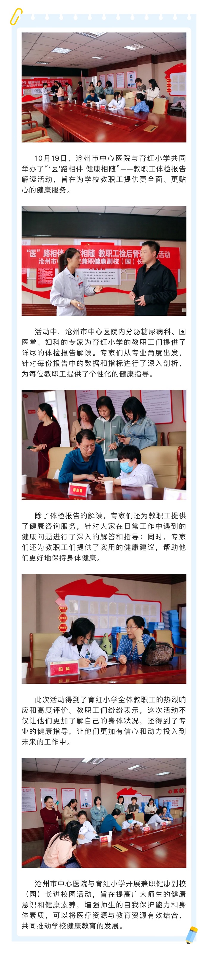 滄州市中心醫(yī)院與育紅小學(xué)攜手 為教職工健康保駕護(hù)航