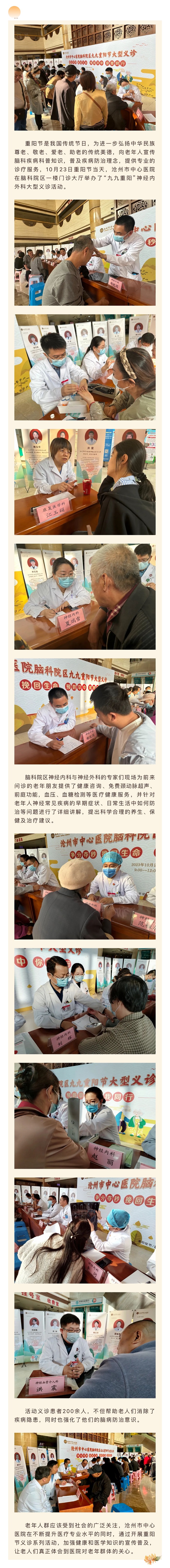 九九重陽送健康 濃濃關(guān)愛暖民心 | 滄州市中心醫(yī)院腦科院區(qū)舉辦重陽節(jié)大型義診活動(dòng)