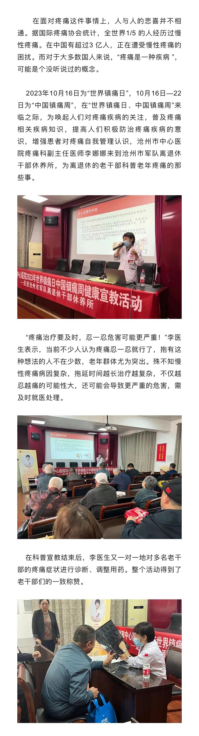 滄州市中心醫(yī)院舉辦世界鎮(zhèn)痛日中國鎮(zhèn)痛周健康宣教活動
