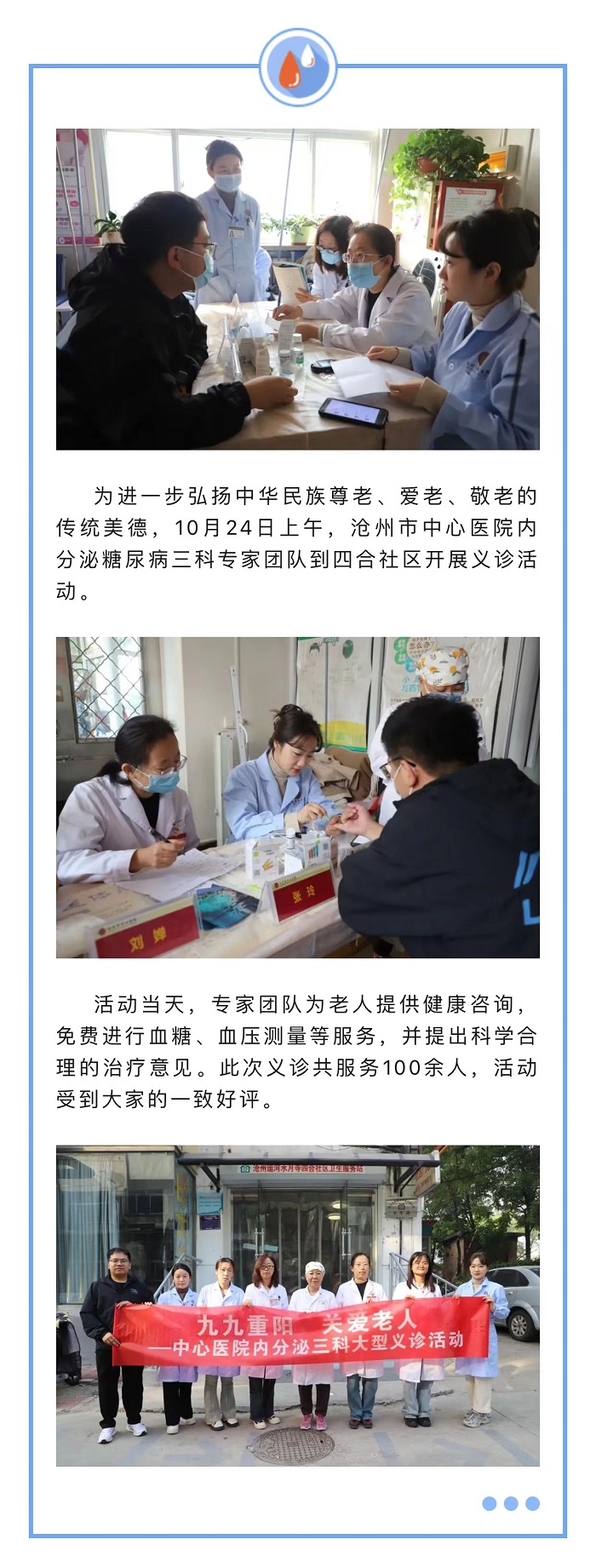 滄州市中心醫(yī)院內分泌糖尿病三科專家團隊到四合社區(qū)開展義診活動
