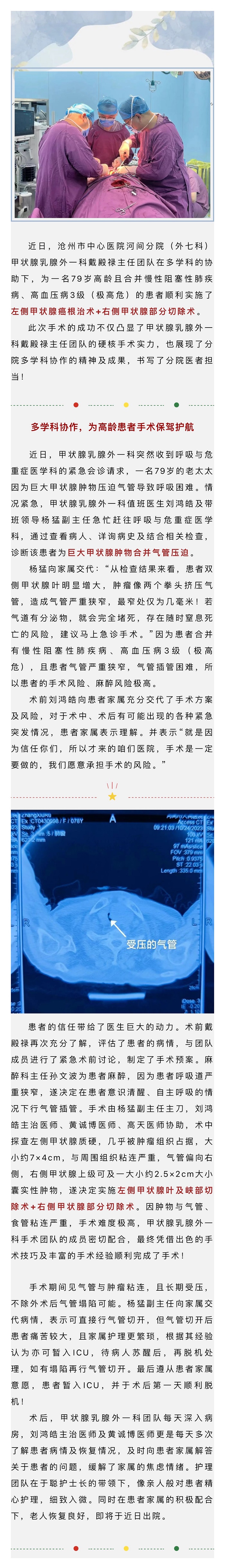 生死時速,古稀老人突發(fā)呼吸困難!滄州市中心醫(yī)院河間分院甲狀腺乳腺外一科聯(lián)合多學(xué)科拯救瀕臨窒息老人