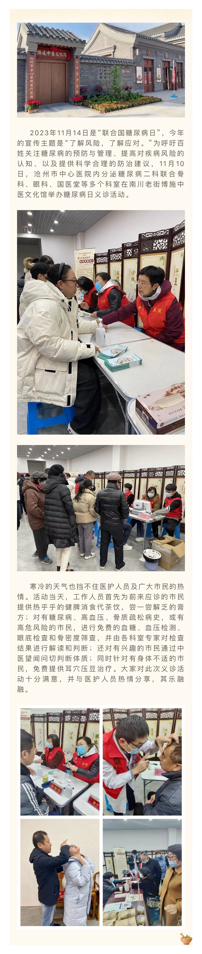 滄州市中心醫(yī)院在博施中醫(yī)文化館舉辦糖尿病日義診活動(dòng)