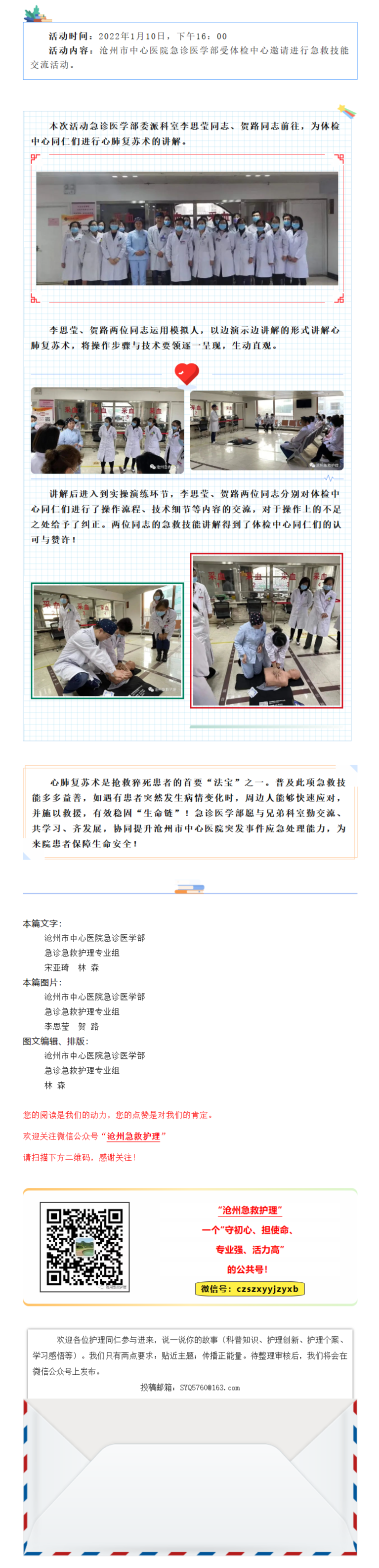 “合力齊發(fā)展·攜手共進步”系列之科間急救技能交流活動