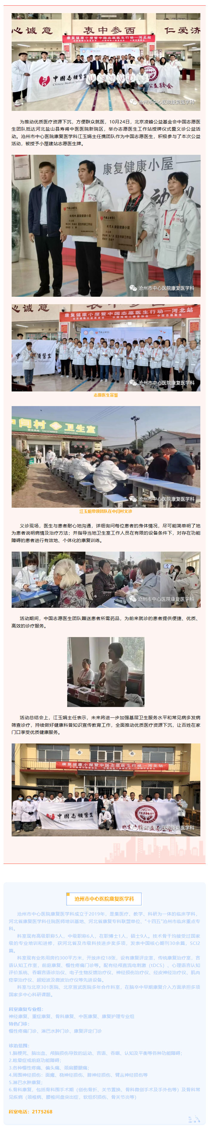 中國(guó)志愿醫(yī)生滄州市中心醫(yī)院康復(fù)團(tuán)隊(duì)赴鹽山開(kāi)展義診活動(dòng) 推動(dòng)優(yōu)質(zhì)醫(yī)療資源下沉 方便群眾就醫(yī)