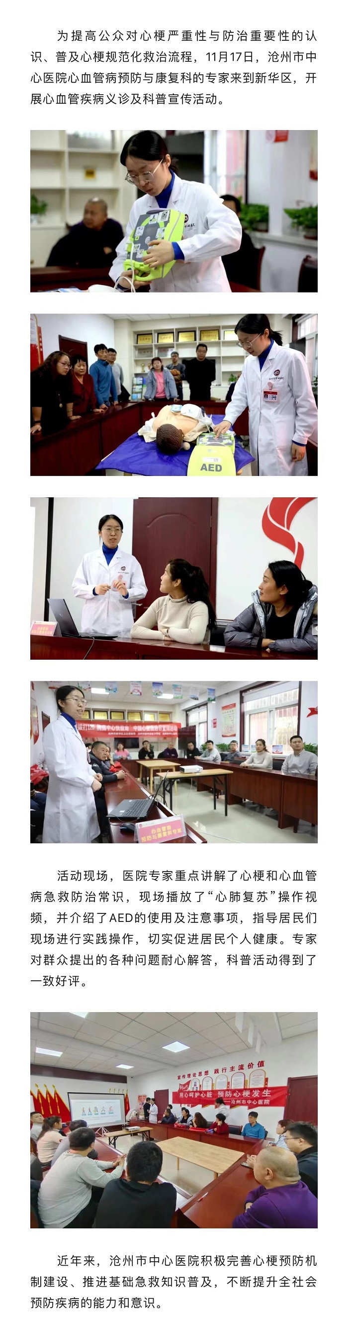 心梗救治進社區(qū) | 滄州市中心醫(yī)院衛(wèi)生健康專家走進新華區(qū)