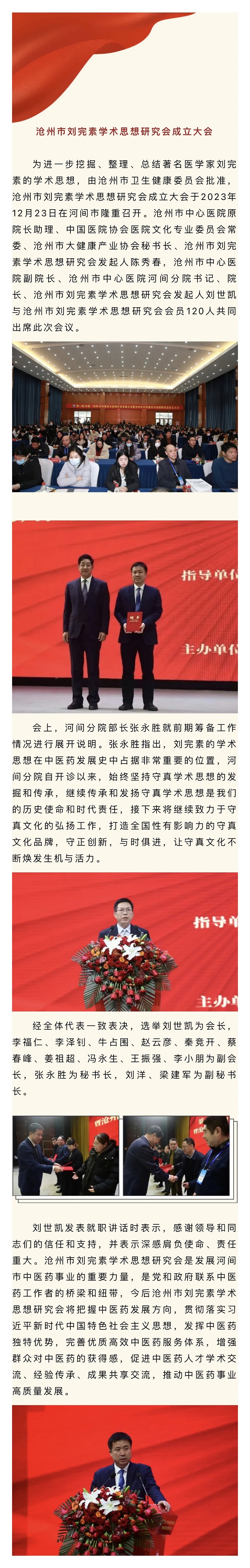 第一屆滄州市劉完素學(xué)術(shù)思想研究會(huì)成立大會(huì)在河間市隆重召開(kāi)