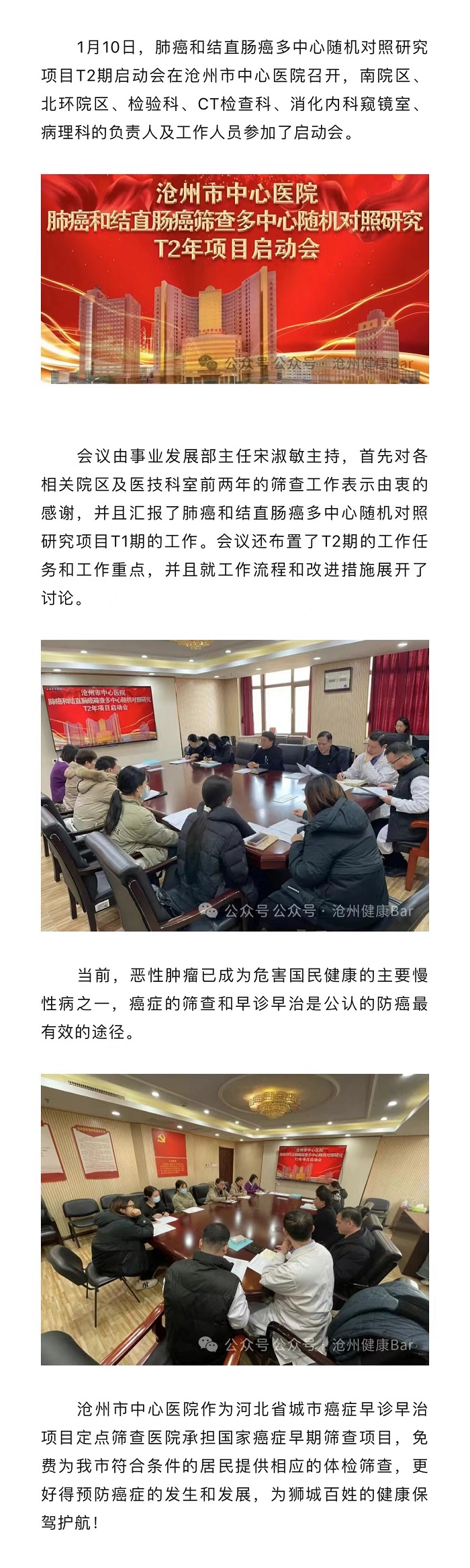 滄州市中心醫(yī)院召開(kāi)肺癌和結(jié)直腸癌多中心隨機(jī)對(duì)照研究項(xiàng)目T2期啟動(dòng)會(huì)
