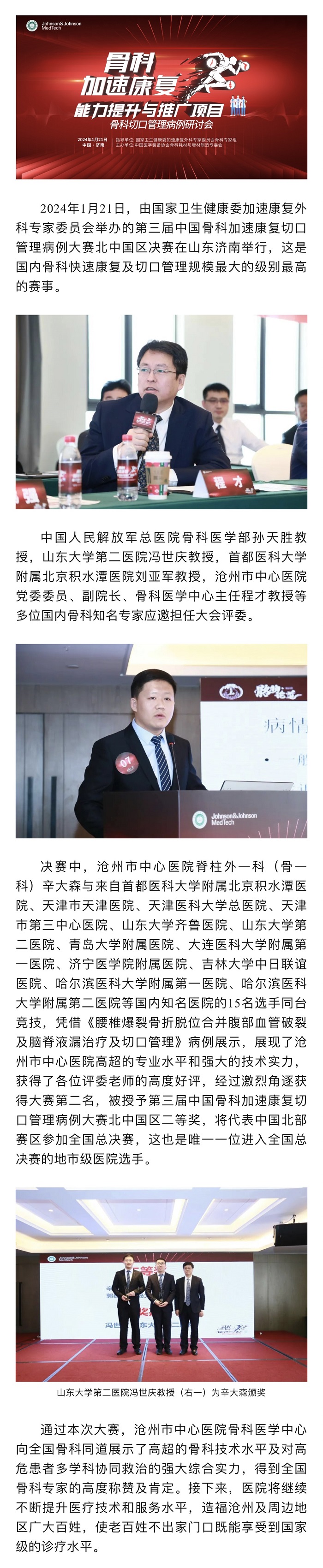 喜訊|滄州市中心醫(yī)院脊柱外一科(骨一科)辛大森榮獲第三屆中國骨科加速康復(fù)切口管理病例大賽北中國區(qū)第二名