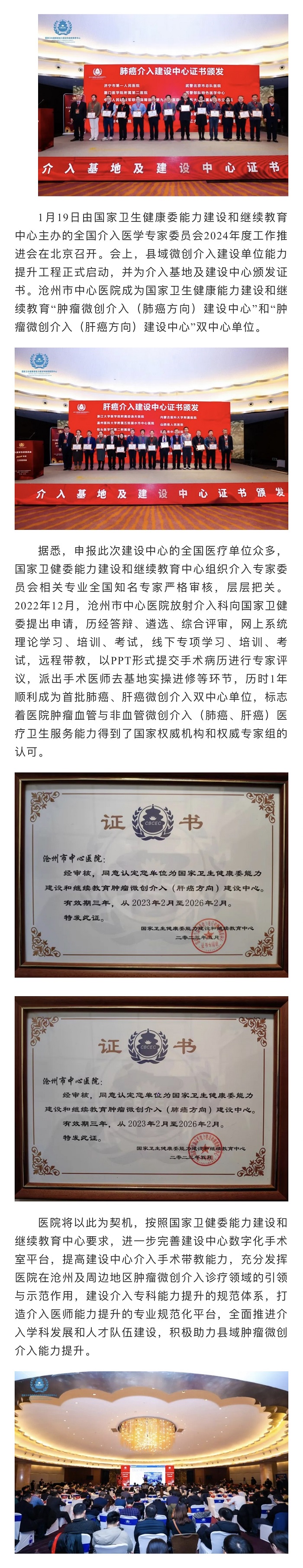 喜訊|滄州市中心醫(yī)院成為國家衛(wèi)生健康能力建設和繼續(xù)教育腫瘤微創(chuàng)介入(肺癌方向)建設中心、腫瘤微創(chuàng)介入(肝癌方向)建設中心