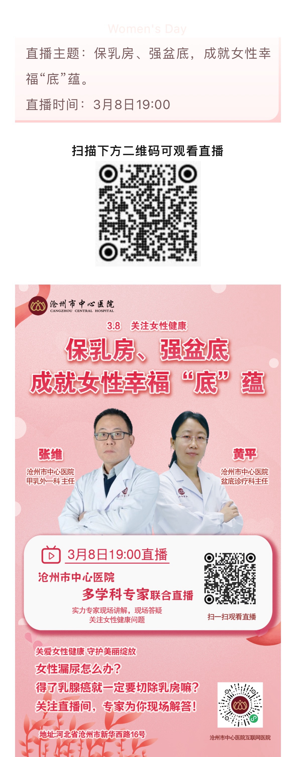 3.8婦女節(jié)直播預(yù)告|滄州市中心醫(yī)院“保乳房、強(qiáng)盆底,成就女性幸?!住N”關(guān)注女性健康專題科普直播