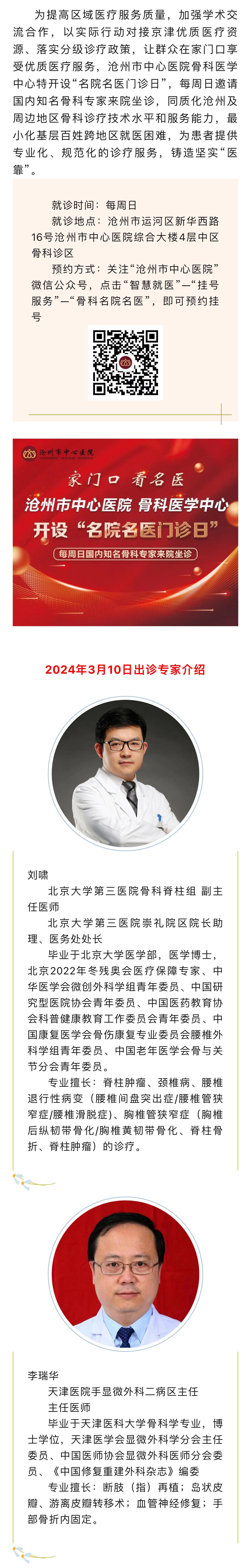 家門口 看名醫(yī) | 滄州市中心醫(yī)院骨科醫(yī)學(xué)中心開設(shè)“名院名醫(yī)門診日” 每周日國內(nèi)知名骨科專家來院坐診