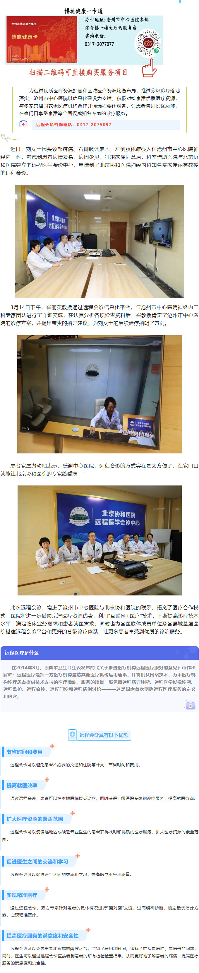 滄州市中心醫(yī)院遠(yuǎn)程會(huì)診服務(wù) 讓百姓就醫(yī)搭乘信息直通車