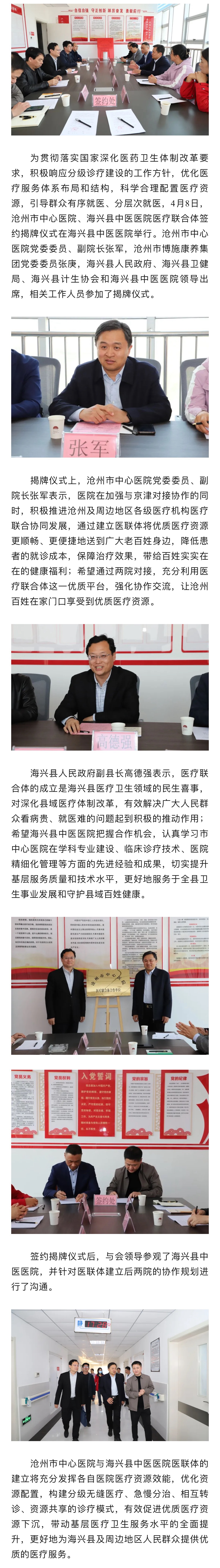 醫(yī)療聯(lián)合聚勢(shì)謀遠(yuǎn) 賦能共建強(qiáng)基惠民|滄州市中心醫(yī)院與海興縣中醫(yī)醫(yī)院舉行醫(yī)療聯(lián)合體簽約揭牌儀式