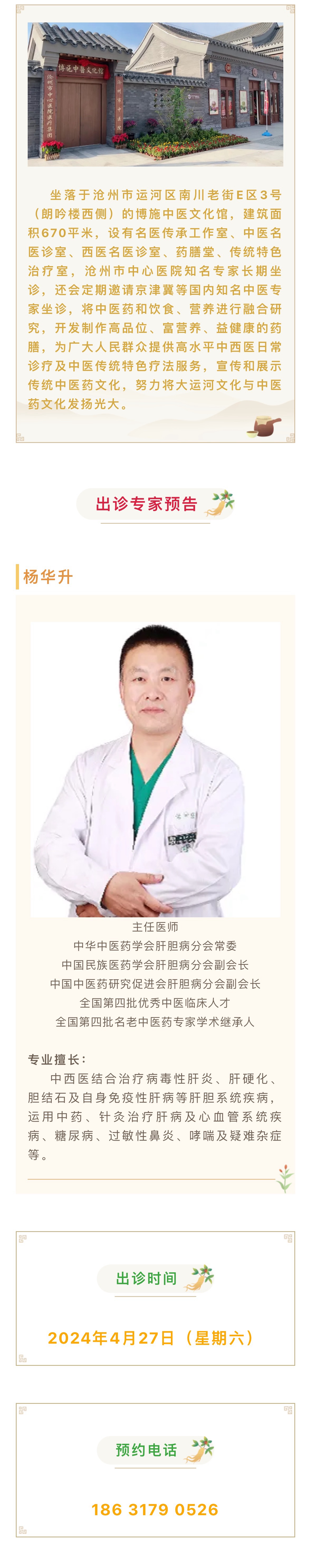 家門口 看名醫(yī)|滄州市中心醫(yī)院醫(yī)療集團博施中醫(yī)文化館出診專家預告