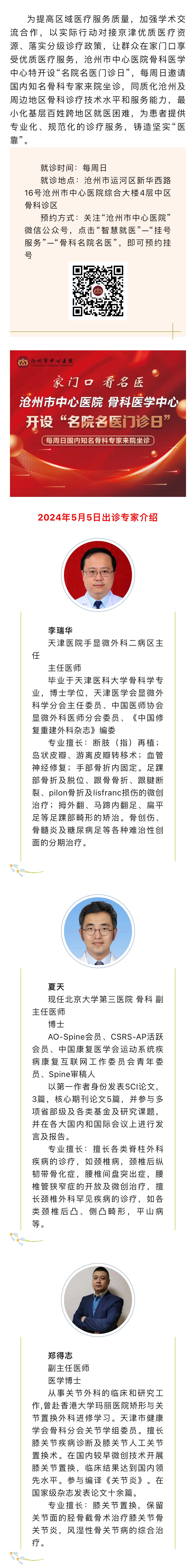 家門口 看名醫(yī) | 滄州市中心醫(yī)院骨科醫(yī)學(xué)中心“名院名醫(yī)門診日”5月5日(本周日)出診專家信息早知道